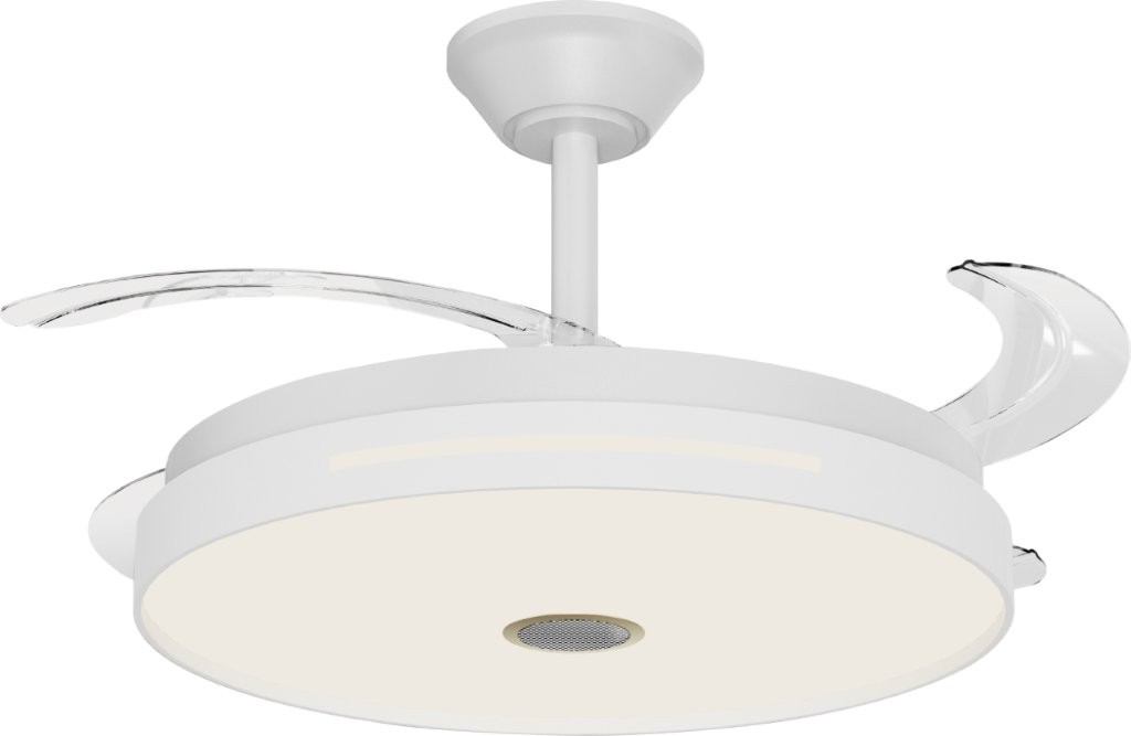 DECORATIVE CEILING FAN 42″ LED RETRACTABLE 46W CCT 30K 40K 60K DIMMABLE BLUETOOTH WHITE FINISHED