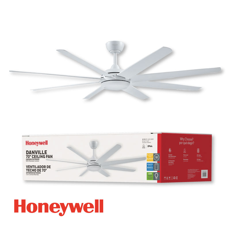 70″,30W, CCT SWITCH 30K,40K,60K,110-240V 50-60H, IP44, ACRYLIC LAMPSHADE, WHITE FINISHED, BLADES 8- WHITE, MOTOR DC 15.5*2.5CM , BLADE ABS MATERIAL, SPEED 6, REMOTE CONTROL