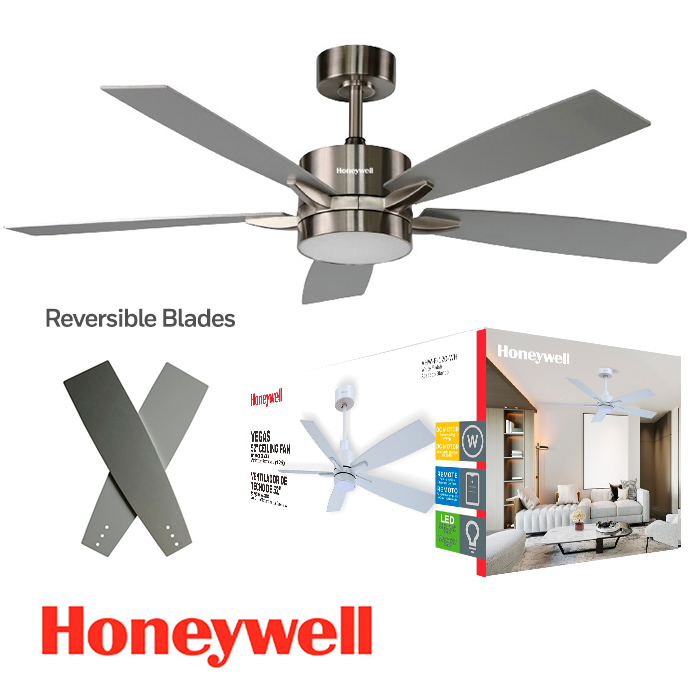 VEGAS DECORATIVE CEILING FAN 52” 18W LED 110-240V 50-60HZ CCT 30K 40K 60K SATIN NICKEL FINISHED