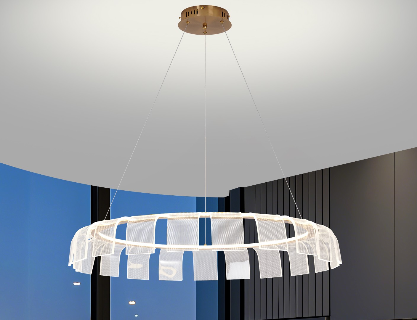 65W LED, CCT SWITCH 30K,40K,60K, 110-240V 50-60HZ, IP20,GOLD FINISHED, METAL+ACRYLIC MATERIAL, D-80CM H-150CM