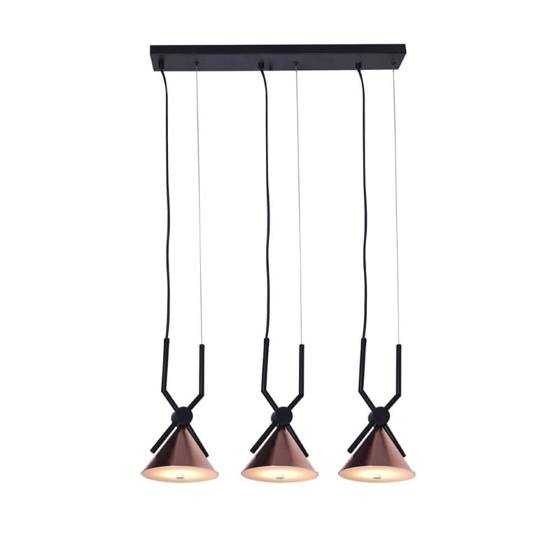 3X6W, 3000K, 110-240V 50-60HZ, IP20, SMD2835, GLASS LAMPSHADE, BLACK+COPPER FINISHED, L-700*D-160MM