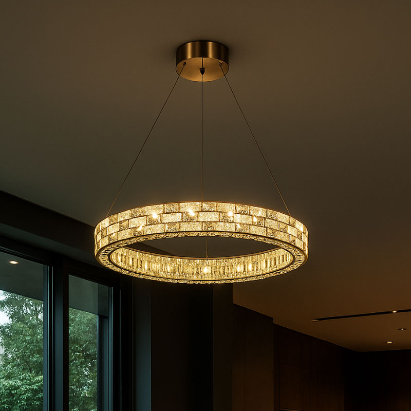 CRYSTAL PENDANT DECORATIVE LAMP 46W LED CCT 3000K 4000K 6000K GOLD FINISHED