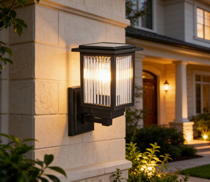 WALL OUTDOOR DECORATIVE LAMP 2 WAY SOLAR 3W LED CCT OR E27*1 BLACK FINISHED