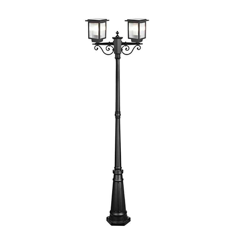 POLE LIGHT DECORATIVE OUTDOOR 2 WAY SOLAR 3W LED CCT OR E27*2 BLACK FINISHED