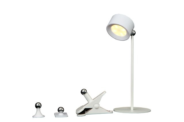 DIMMABLE, TOUCH SWITCH CCT 30K,40K,60K, DC5V/2A, IP20, BATTERY INCLUDED 1200MAH*1, WHITE FINISHED, MULTIFUNCTIONAL TABLE, CLIP ( MAGNETIC), TYPE-C WIRE 80CM, METAL MATERIAL, D-12CM H-28CM